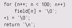 Форматируйте код, подчеркивая его структуру. Форматирование кода логично выбранными отступами — самый простой способ добиться того, чтобы структура программы стала самоочевидна. Приведенный фрагмент плохо отформатирован: ? for(n++;n<100;field[n++]='\(O'); Проведя простейшее форматирование, мы несколько улучшим его: