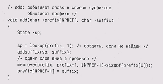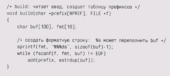 Аргументы build — массив prefix, содержащий предыдущие NPREF введенных