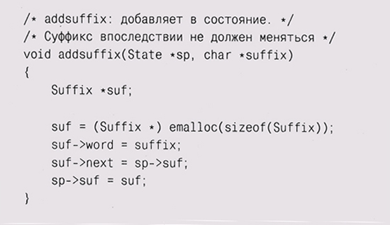 с реализацией действие — добавляет слово в список суффиксов. Функция add