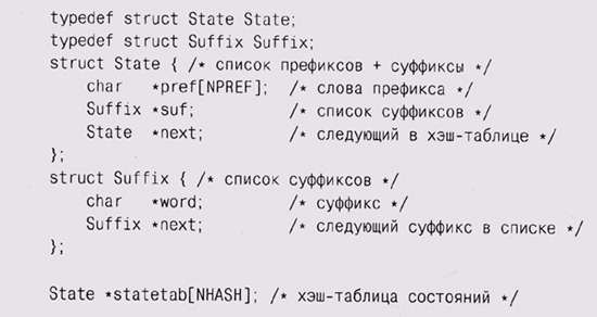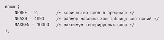 В этом описании определяются количество слов в префиксе (NPREF), размер