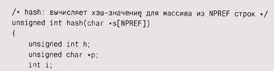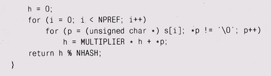 строк. Нетрудно преобразовать хэш-функцию из главы 2, сделав цикл по строкам