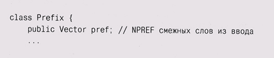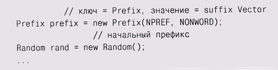 Перепишите Java-версию markov так, чтобы использовать массив вместо класса Vector для префикса в классе Prefix. |