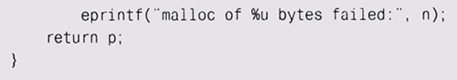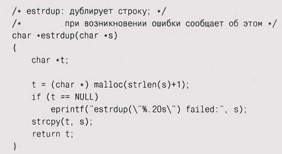 Сходным образом работает est rdup: она пытается создать копию строки и, если памяти для этого не хватает, завершает программу с сообщением об ошибке (с помощью eprintf):