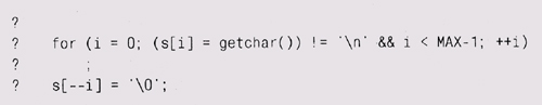 Теперь надо проверить и другие граничные условия. Ситуации, когда во вводе содержится очень длинная строка или не содержится символов перевода строки, предусмотрены кодом — на этот случай существует ограничение i значением МАХ-1. Однако что будет, если ввод абсолютно пуст (в нем нет вообще ни одного символа) и первый же вызов getchar возвратит значение EOF? Надо добавить проверку и для такого случая: